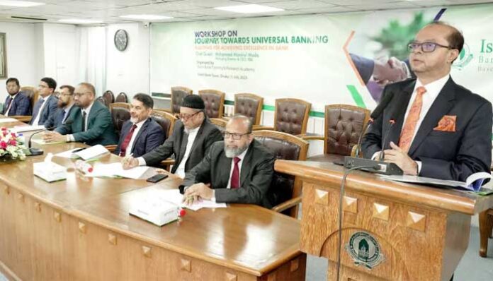কর্পোরেট ডেস্ক : ইসলামী ব্যাংক ট্রেনিং অ্যান্ড রিসার্চ একাডেমি (আইবিটিআরএ)-এর উদ্যোগে সম্প্রতি ইসলামী ব্যাংক টাওয়ারে “জার্নি টুয়ার্ডস ইউনিভার্সেল ব্যাংকিং: অডিটিং ফর অ্যাচিভিং এক্সিলেন্স ইন ব্যাংক” শীর্ষক দিনব্যাপী এক কর্মশালার আয়োজন করা হয়।