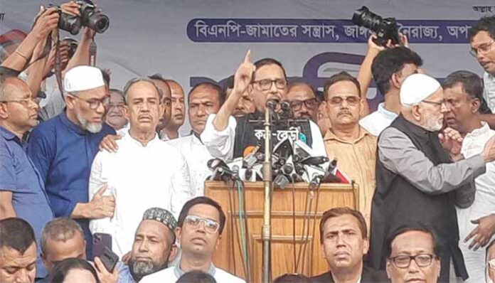 বুধবার (১২ জুলাই) জাতীয় মসজিদ বায়তুল মোকাররমের দক্ষিণ গেটের সামনে শান্তি সমাবেশে এ ঘোষণা দেন দলটির সাধারণ সম্পাদক ওবায়দুল কাদের।