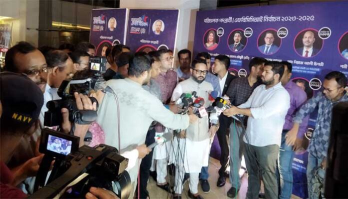 সোমবার (১৭ জুলাই) রাতে বন্দর নগরী চট্টগ্রামের হোটেল রেডিসন ব্লু বে ভিউতে এফবিসিসিআইয়ের (২০২৩-২৫) নির্বাচনকে সামনে রেখে এক আলোচনা সভায় যোগ দেওয়ার আগে সাংবাদিকদের প্রশ্নের জবাবে তিনি এ মন্তব্য করেন।