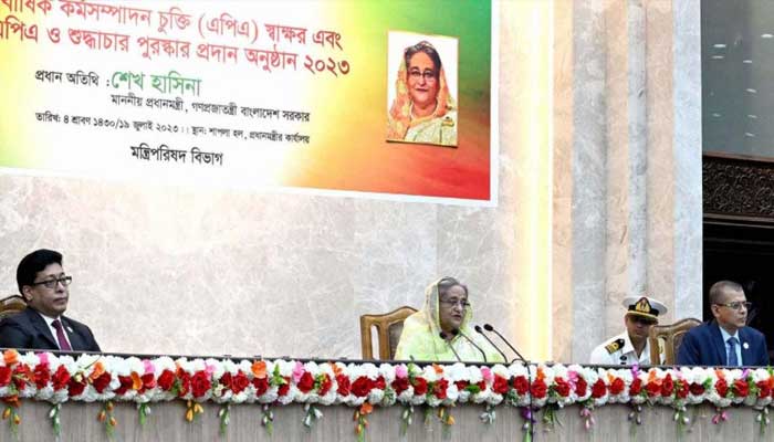 বুধবার (১৯ জুলাই) তাঁর কার্যালয়ে ২০২৩-২৪ অর্থবছরের বার্ষিক কর্মসম্পাদন চুক্তি স্বাক্ষর এবং শুদ্ধাচার পুরস্কার অনুষ্ঠানে প্রধান অতিথির বক্তব্যে প্রধানমন্ত্রী একথা বলেন। তিনি সরকারের কর্মপরিকল্পনা বাস্তবায়নে উত্তরসূরিদের প্রস্তুত করতে পদস্থ সরকারি কর্মকর্তাদের প্রতি আহ্বান জানান।
