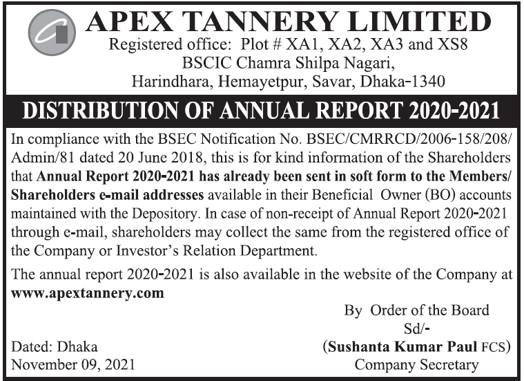 Distribution of Annual Report 2020-2021 of Apex Tannery Ltd.