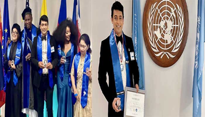 বৃহস্পতিবার (২০ জুলাই) রাতে যুক্তরাষ্ট্রের নিউ ইয়র্কের ম্যানহাটনের জাতিসংঘের সদর দপ্তরে এক অনুষ্ঠানে জায়েদ খানের হাতে সনদ ও সম্মাননা স্মারক তুলে দেয়া হয়।