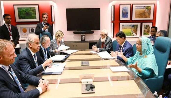 বৈঠকে বাংলাদেশের প্রধানমন্ত্রী বিশ্ব খাদ্য কর্মসূচিকে (ডব্লিউএফপি) বাংলাদেশের জন্য তহবিল সংগ্রহ করতে বলেছেন, বিশেষ করে বাস্তুচ্যুত রোহিঙ্গাদের জন্য যারা বাংলাদেশে আশ্রয় নিয়েছে, কারণ রোহিঙ্গাদের জন্য মাথাপিছু তহবিল ১২ মার্কিন ডলার থেকে ৮ মার্কিন ডলারে নেমে এসেছে।