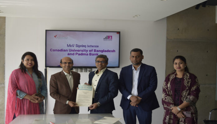 অনুষ্ঠানে পদ্মা ব্যাংকের ইভিপি এবং সিএইচআরও শরিফ মঈনুল হোসেন এবং কানাডিয়ান ইউনিভার্সিটির উপাচার্য প্রফেসর ড. এইচ এম জহিরুল হক নিজ নিজ প্রতিষ্ঠানের পক্ষে চুক্তিতে স্বাক্ষর করেন। চুক্তির আওতায় কানাডিয়ান ইউনির্ভাসিটি অব বাংলাদেশের ‘অ্যাম্বাসেডর অব গুডউইল”- হিসেবে স্বীকৃতি পাবেন পদ্মা ব্যাংকের কর্মকর্তারা। তাদের রেফারেন্সে বেসরকারি এই বিশ্ববিদ্যালয়টিতে উচ্চ শিক্ষায় ভর্তি ইচ্ছুক শিক্ষার্থীরা অতিরিক্ত ৫% ছাড় পাবেন। এছাড়াও পদ্মা ব্যাংকের কর্মকর্তারা উপভোগ করবেন আকর্ষণীয় ডিসকাউন্ট ও স্কলারশিপ সুবিধা।