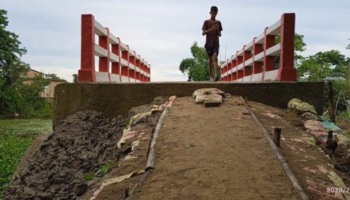 সরেজমিনে গতকাল বিকেলে দেখা যায়, সেতুর দুই পাশে সংযোগ সড়ক ধসে গেছে। সেখানে কোনো প্রতিরক্ষা বাঁধের কোন ব্যবস্থা রাখা হয়নি। সড়কের মাঝখানে সামান্য ইট বিছানো। সেতুর এক পাশে উদ্বোধনের জন্য ফলক স্থাপন করা।