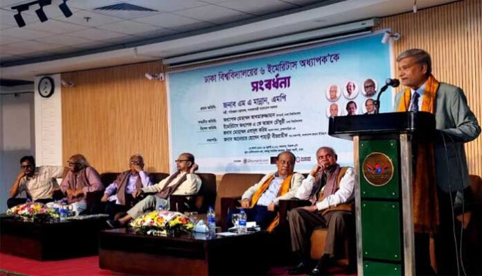 নিজস্ব প্রতিবেদক: সংবর্ধিত হলেন ঢাকা বিশ্ববিদ্যালয়ের ইমেরিটাস ছয় অধ্যাপক। তারা হলেন- ঢাকা বিশ্ববিদ্যালয়ের ভূগোল ও পরিবেশ বিভাগের অধ্যাপক নজরুল ইসলাম, প্রাচ্যকলা বিভাগের অধ্যাপক হাশেম খান, চারুকলা ইনস্টিটিউটের অঙ্কন ও চিত্রায়ন বিভাগের অধ্যাপক রফিকুন নবী, আন্তর্জাতিক ব্যবসায় বিভাগের অধ্যাপক খন্দকার বজলুল হক, ইংরেজি বিভাগের অধ্যাপক সৈয়দ মনজুরুল ইসলাম ও উন্নয়ন অধ্যয়ন বিভাগের অধ্যাপক আতিউর রহমান।