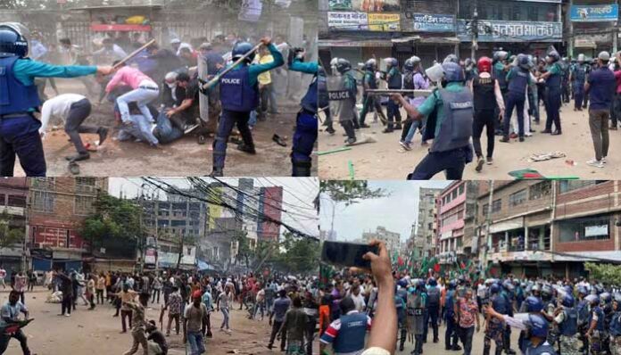বিএনপির অবস্থান কর্মসূচিতে লাঠিচার্জ ও কাঁদানে গ্যাস ছোড়ে পুলিশ। শুরু হয় দু’পক্ষের ধাওয়া-পাল্টাধাওয়া।