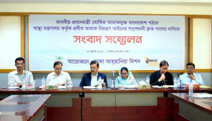 ঢাকা আহছানিয়া মিশনের স্বাস্থ্য ও ওয়াশ সেক্টরের পরিচালক ইকবাল মাসুদের সভাপতিত্বে সংবাদ সম্মেলনে মূল প্রবন্ধ পাঠ করেন সংস্থার তামাক নিয়ন্ত্রণ প্রকল্পের সমন্বয়কারী মো. শরিফুল ইসলাম। তিনি বলেন, স্বাস্থ্য মন্ত্রণালয় কর্তৃক প্রণীত তামাক নিয়ন্ত্রণ আইনের সংশোধিত খসড়াতে ধুমপানের নির্ধারিত এলাকা বিলুপ্ত, বিক্রয়স্থলে তামাকজাত দ্রব্য প্রদর্শন নিষিদ্ধ, খুচরা বিড়ি-সিগারেট বিক্রি বন্ধ, ই-সিগারেট নিষিদ্ধ, তামাক কোম্পানির সিএসআর কার্যক্রম বন্ধ ও সিগারেটের প্যাকেটে সতর্কবার্তা ৫০ থেকে ৯০ শতাংশ বাড়ানোর প্রস্তাব করা হয়েছে যা আইনটিকে আরো কঠোর করবে। ফলে তামাকজনিত মৃত্যু কমবে, জনস্বাস্থ্যের উন্নয়ন ঘটবে এবং প্রধানমন্ত্রী ঘোষিত তামাকমুক্ত বাংলাদেশের অগ্রযাত্রা ত্বরাণ্বিত হবে। এজন্য সম্মেলনে বক্তারা সংশোধিত আইনের দ্রুত পাসের জন্য জোড়ালো দাবি তুলেন।