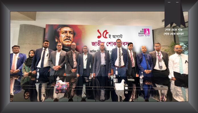 কর্পোরেট ডেস্ক: স্বাধীনতার মহান স্থপতি জাতির পিতা বঙ্গবন্ধু শেখ মুজিবুর রহমানের ৪৮তম শাহাদাত বার্ষিকীতে “জাতীয় শোক দিবস ২০২৩”- পালনের জন্য মাসব্যাপি নানা কর্মসূচীর উদ্যোগ নিয়েছে পদ্মা ব্যাংক লিমিটেড।