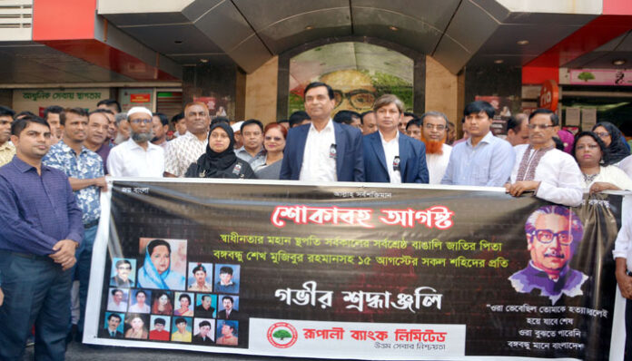কর্পোরেট ডেস্ক: ১৫ আগস্ট জাতীয় শোক দিবসে নানা কর্মসূচী পালন করবে রূপালী ব্যাংক লিমিটেড। একই সাথে শোক দিবসকে সামনে রেখে আগস্টের প্রথম দিন থেকেই শুরু হয়েছে ব্যাংকের মাসব্যাপী কর্মসূচী।