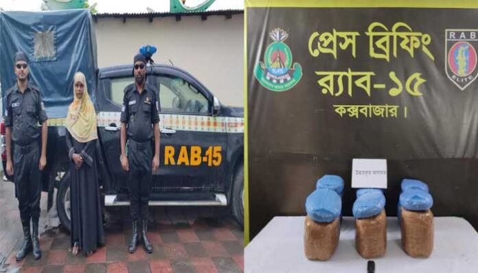 মঙ্গলবার (১ আগষ্ট) বিকাল ৪ টার সময় কক্সবাজার র্যাব-১৫ এর আভিযানিক দল গোপন সংবাদের ভিত্তিতে জানতে পারে, একজন মাদক ব্যবসায়ী মাদকদ্রব্য ক্রয়-বিক্রয়ের লক্ষ্যে বিপুল পরিমাণ গাঁজা সাথে নিয়ে চট্টগ্রাম থেকে বাসযোগে কক্সবাজারের উদ্দেশ্যে আসছে। উক্ত সংবাদের ভিত্তিতে কক্সবাজার র্যাব-১৫ এর একটি চৌকস আভিযানিক দল চকরিয়া থানাধীন ডুলহাজারা ইউনিয়নের পাগলীর বিল এলাকায় কক্সবাজার-চট্টগ্রাম মহাসড়কের পূর্ব পাশে মামুনুর রশিদের সার্ভিসিং সেন্টারের সামনে অস্থায়ী চেকপোস্ট স্থাপন করে তল্লাশী শুরু করে। এ সময় চট্টগ্রাম থেকে কক্সবাজারগামী হানিফ পরিবহনের যাত্রীবাহী একটি বাসে একজন মহিলা যাত্রী র্যাবের তল্লাশী অভিযানের বিষয়টি বুঝতে পেরে সন্দেহজনকভাবে বাস থেকে নেমে কৌশলে পালানোর সময় র্যাবের আভিযানিক দল তাকে আটক করে।