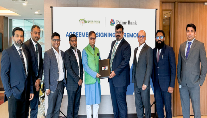 প্রাইম ব্যাংকের উপব্যবস্থাপনা পরিচালক নাজিম এ. চৌধুরী এবং ওয়াটার গার্ডেন রিসোর্ট-এর চেয়ারম্যান ড. আহসান এইচ মনসুর নিজ নিজ প্রতিষ্ঠানের পক্ষে সমঝোতা চুক্তি স্বাক্ষর করেন। এসময় প্রাইম ব্যাংকের কনজ্যুমার সেলসের প্রধান মামুর আহমেদ এবং কার্ডস ও এডিসি-এর প্রধান মাসুদুল হক ভূঁইয়া সহ উভয় প্রতিষ্ঠানের ঊর্ধ্বতন কর্মকর্তাবৃন্দ উপস্থিত ছিলেন।