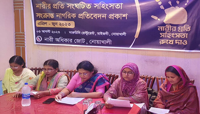 বৃহষ্পতিবার (৩ জুলাই) জেলা শহর মাইজদীর স্থানীয় একটি রেস্টুরেন্ট নোয়াখালী নারী অধিকার জোট আয়োজিত জেলায় সংগঠিত নারী ও শিশুর প্রতি সহিংসতা বিষয়ক ত্রৈমাসিক প্রতিবেদনে এমন তথ্য উঠে আসে। এছাড়া নারী নির্যাতনের বিরুদ্ধে নোয়াখালী নারী ও শিশু নির্যাতন দমন ট্রাইব্যুনালে মামলা হয়েছে ১৯০ টি।