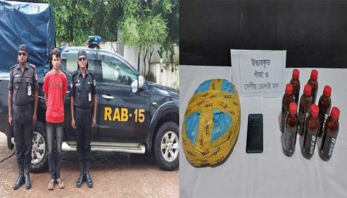 রবিবার (৬ আগষ্ট) রাত ১২ টা ৩০ মিনিটের সময় কক্সবাজার র্যাব-১৫ এর আভিযানিক দল গোপন সংবাদের ভিত্তিতে জানতে পারে কক্সবাজার জেলার চকরিয়া থানাধীন চকরিয়া পৌরসভার ১নং ওয়ার্ডস্থ ঘনশ্যাম বাজার সৌদিয়া ভাতঘর দোকানের সামনে একজন মাদক কারবারী মাদকদ্রব্যসহ অবস্থান করছে। উক্ত সংবাদের ভিত্তিতে র্যাবের সিপিএসসি’র একটি চৌকস আভিযানিক দল উক্ত স্থানে মাদক বিরোধী বিশেষ অভিযান পরিচালনা করে। অভিযান পরিচালনাকালে র্যাবের উপস্থিতি বুঝতে পেরে কৌশলে পালানোর চেষ্টাকালে রোকন উদ্দিন নামে এক মাদক কারবারীকে গ্রেফতার করা হয়। উপস্থিত সাক্ষীদের সম্মুখে আটককৃত ব্যক্তির দেহ ও সাথে থাকা শপিং ব্যাগ তল্লাশী করে তার হেফাজত হতে সর্বমোট ১ কেজি গাঁজা ও ২ লিটার দেশীয় তৈরী চোলাই মদ (স্পীডের প্লাস্টিক বোতল ভর্তি) উদ্ধার করা হয়।
