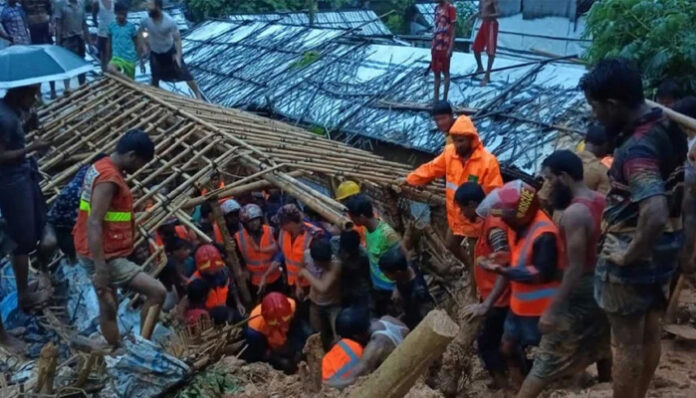 কক্সবাজার ফায়ার সার্ভিসের উপসহকারী পরিচালক অতীশ চাকমা বলেন, ‘উখিয়া উপজেলার বালুখালী রোহিঙ্গা ক্যাম্পে ভারী বর্ষণে পাহাড় ধসের ঘটনা ঘটেছে। এতে ৯ নম্বর ক্যাম্পে সি ব্লকে পাহাড়ের নিচে বসবাসকারী আনোয়ার ইসলামের বসতঘরের ওপর মাটি চাপা পড়ে। খবর পেয়ে ফায়ার সার্ভিস উখিয়া স্টেশনের একটি ইউনিট দ্রুত ঘটনাস্থলে পৌঁছে উদ্ধার তৎপরতা শুরু করে। এ সময় মা-মেয়েকে মৃত অবস্থায় এবং গৃহকর্তাকে আহতাবস্থায় উদ্ধার করা হয়।’