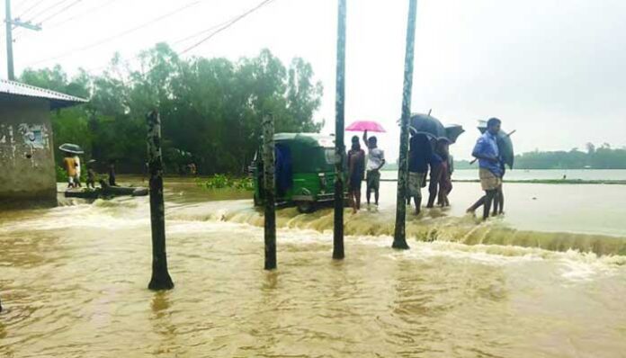 শনিবার রাত থেকে শুরু হয় অতি ভারী বর্ষণ। চারদিনের টানা বর্ষণে নিচু এলাকায় লোকালয়ে পানি উঠে গেছে। এতে কয়েক হাজার পরিবার পানিবন্দি হয়ে পড়েছে বলে জানিয়েছে স্থানীয় প্রশাসন। এতে বীজতলা ও নতুন রোপণ করা ধানের চারা ক্ষতিগ্রস্ত হয়েছে। পাশাপাশি পুকুর থেকে মাছও চলে গেছে।