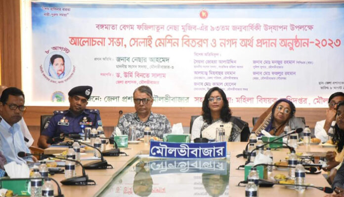 উল্লেখ্য; বঙ্গমাতা শেখ ফজিলাতুন নেছা মুজিবের ৯৩তম জন্মবার্ষিকী উদযাপন উপলক্ষে মৌলভীবাজার জেলায় মোট ৯০ জনকে সেলাই মেশিন ও ৭৫ জনকে ২ হাজার টাকা করে নগদ অর্থ প্রদান করা হয়।
