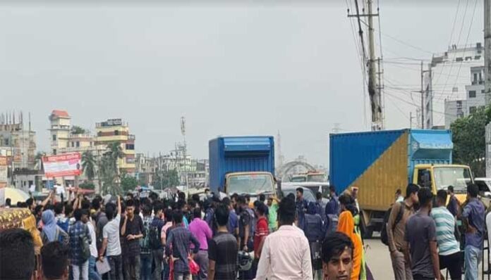 বৃহস্পতিবার (১০ আগস্ট) সকাল সাড়ে ৮ টার দিকে আদমজী-চাষাড়া সড়কের ইপিজেডের গেটের সামনে তারা এ সড়ক অবরোধ করে।