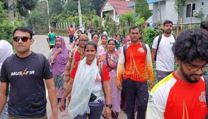 তিমির বনিক, ষ্টাফ রিপোর্টার: শোকের মাস আগস্টে ১৫ কিলোমিটার দীর্ঘ পদযাত্রার আয়োজন করেছে পর্বতারোহীদের সংগঠন অভিযাত্রী। ‘শোক থেকে শক্তি অদম্য পদযাত্রা’ প্রতিপাদ্য নিয়ে এই পদযাত্রায় অংশ নেন এভারেস্ট বিজয়ী নিশাত মজুমদার।