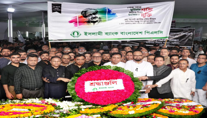 কর্পোরেট সংবাদ ডেস্ক: ইসলামী ব্যাংক বাংলাদেশ পিএলসি’র উদ্যোগে ১৫ আগস্ট ২০২৩, মঙ্গলবার জাতীয় শোক দিবস ও জাতির পিতা বঙ্গবন্ধু শেখ মুজিবুর রহমান-এর ৪৮ তম শাহাদত বার্ষিকী উপলক্ষ্যে ব্যাংকের ডাইরেক্টর মোঃ জয়নাল আবেদীনের নেতৃত্বে ধানমন্ডি ৩২ নম্বরে বঙ্গবন্ধুর প্রতিকৃতিতে পুস্পস্তবক অর্পণ করা হয়।