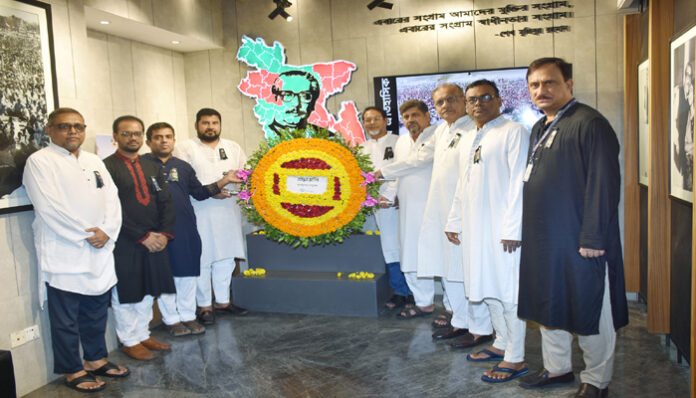কর্পোরেট ডেস্ক: স্বাধীনতার মহান স্থপতি জাতির পিতা বঙ্গবন্ধু শেখ মুজিবুর রহমানের ৪৮তম শাহাদাৎ বার্ষিকী উপলক্ষ্যে গৃহীত মাসব্যাপী কর্মসূচীর আওতায় এনসিসি ব্যাংকের পক্ষ থেকে বঙ্গবন্ধুর প্রতিকৃতিতে পুষ্পস্তবক অর্পণ এবং আলোচনা সভা ও দোয়া মাহফিলের আয়োজন করা হয়। ব্যাংকের পরিচালনা পর্ষদের পক্ষ থেকে পুষ্পস্তবক দিয়ে শ্রদ্ধাঞ্জলি জানানো হয়।