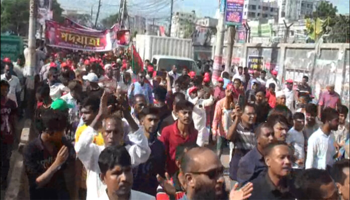পদযাত্রায় বক্তরা, সরকারের পদত্যাগ ও বেগম খালেদা জিয়ার নিঃশর্ত মুক্তি দাবি করেন।