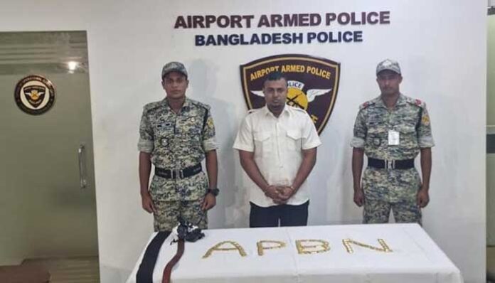 সোমবার (২১ আগস্ট) সকালে এয়ারপোর্ট আর্মড পুলিশের অতিরিক্ত পুলিশ সুপার মোহাম্মদ জিয়াউল হক জানান, রোববার দিবাগত রাত ১০ টায় বিমানবন্দরের হ্যাংগারের সামনে থেকে শফিকুল ইসলামকে সন্দেহজনকভাবে আটক করা হয়। এসময় তার কোমরে ৬৮টি গোল্ডবার পাওয়া যায় এবং যার ওজন ৭ কেজি ৮৮৮ গ্রাম। উদ্ধারকৃত স্বর্নের বাজারমূল্য ৭ কোটি ৮০ লাখ টাকা।