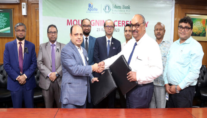 ২৩ আগস্ট ২০২৩, বুধবার ইসলামী টাওয়ারে ব্যাংকের ম্যানেজিং ডাইরেক্টর ও সিইও মুহাম্মদ মুনিরুল মওলার উপস্থিতিতে ডেপুটি ম্যানেজিং ডাইরেক্টর মোঃ আকিজ উদ্দীন ও এ্যাপোলো মাল্টি স্পেশালিটি হাসপাতাল কলকাতার সিইও রানা দাসগুপ্ত এ সংক্রান্ত সমঝোতা স্মারকে নিজ নিজ প্রতিষ্ঠানের পক্ষে স্বাক্ষর করেন।