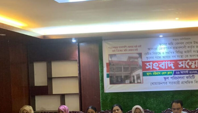 চট্টগ্রাম প্রতিনিধি: চট্টগ্রাম কর্ণফুলী উপজেলার চরপাথরঘাটা ইউনিয়নে প্রভাবশালীদের কাছে জবর দখলে থাকা ‘খোয়াজনগর সরকারি প্রাথমিক বিদ্যালয়’ এর জমি উদ্ধারের দাবিতে সংবাদ সম্মেলন করেছেন স্কুল পরিচালনা কমিটি ও শিক্ষক শিক্ষিকাগণ।