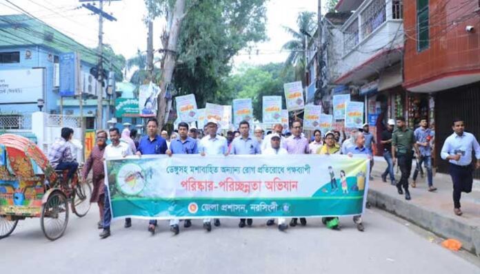সাইফুল ইসলাম রুদ্র, নরসিংদী জেলা প্রতিনিধি: নরসিংদী জেলায় ডেঙ্গুসহ মশাবাহিত রোগ প্রতিরোধে পক্ষকালব্যাপী পরিস্কার পরিচ্ছন্নতা অভিযানের উদ্বোধন করা হয়েছে।