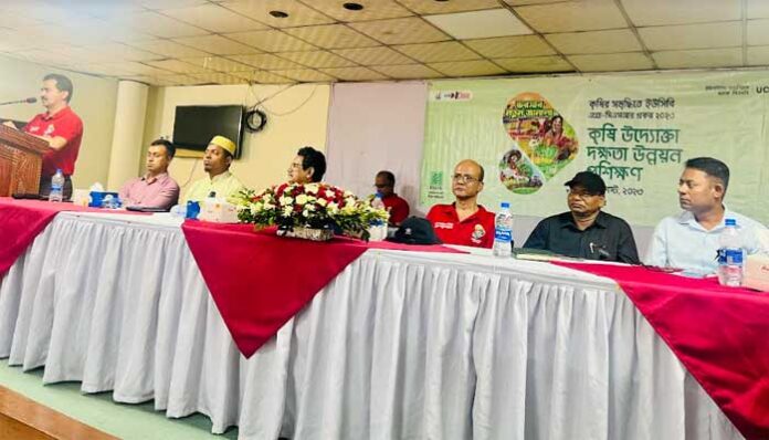 কর্পোরেট ডেস্ক: বাংলাদেশ ব্যাংকের নির্দেশনা অনুযায়ী ইউনাইটেড কমার্শিয়াল ব্যাংক পিএলসি (ইউসিবি) সামাজিক দায়িত্বের অংশ হিসেবে কৃষিখাতে সহায়তা প্রদানের জন্য এগ্রো-সিএসআর প্রকল্প ২০২৩ ‘ভরসার নতুন জানালা’-র উদ্যোগে সোমবার (২৮ আগস্ট ২০২৩) ফরিদপুর জেলার ব্র্যাক লার্নিং সেন্টারে কৃষি উদ্যোক্তাদের এক প্রশিক্ষণ অনুষ্ঠিত হয়।