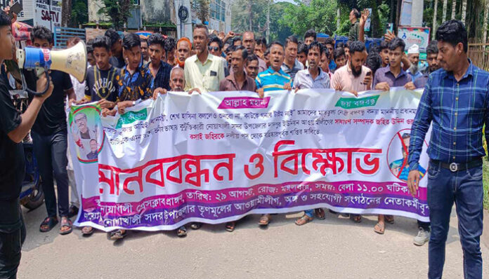 মঙ্গলবার (২৯ আগস্ট) বেলা ১১টায় নোয়াখালী প্রেসক্লাবের সামনে সদর উপজেলার তৃণমূলের আওয়ামী লীগ, অঙ্গ ও সহযোগী সংগঠনের ব্যানারে ঘন্টা ব্যাপি এ কর্মসূচি পালন করা হয়।