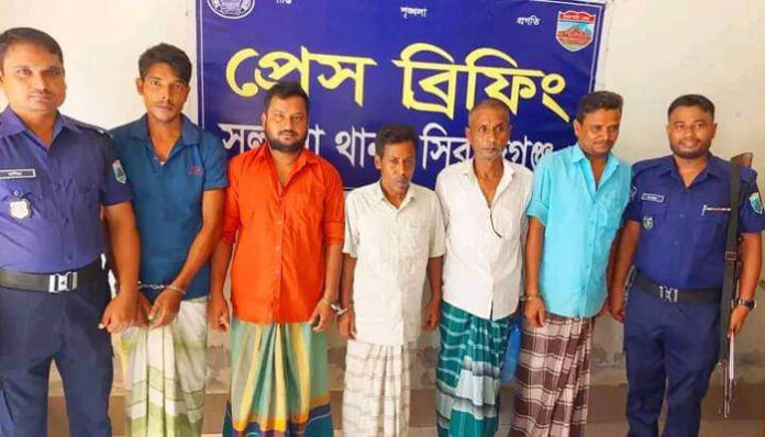 আটককৃতরা হলো, একই এলাকার আগরপুর গ্রামের ইউপি সদস্য বাবু আকন্দ (৫১), আমশড়া গ্রামের ইউপি সদস্য আতাউর রহমান (৫৫), আব্দুস ছালাম (৫২), খোর্দ্দশিমলা গ্রামের মজনু আলী শেখ (৩১) ও হিরো হোসেন (৩৩)
