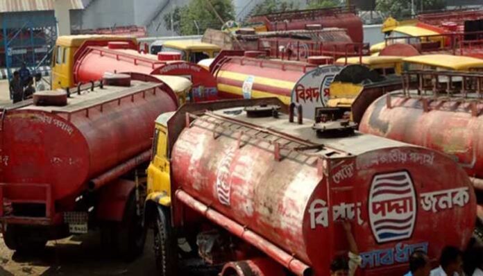 জানা গেছে, রোববার সকাল থেকে বাংলাদেশ ট্যাংকলরি ওনার্স অ্যাসোসিয়েশন, বাংলাদেশ জ্বালানি তেল পরিবেশক সমিতি, খুলনা বিভাগীয় ট্যাংকলরি শ্রমিক ইউনিয়ন এবং পদ্মা, মেঘনা ও যমুনা ট্যাংকলরি শ্রমিক কল্যাণ সমিতি ওই ধর্মঘট পালন করছে।