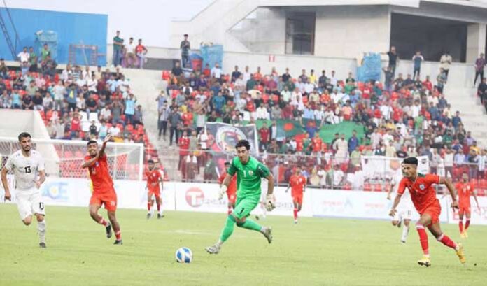 রোববার (৩ সেপ্টেম্বর) ফিফা ফ্রেন্ডলি ম্যাচে কিংস অ্যারেনায় আফগানিস্তানের বিপক্ষে শুরু থেকে অবশ্য আক্রমণাত্মক খেলে বাংলাদেশ। বেশ কয়েকটি সুযোগও তৈরি করে স্বাগতিকরা। কিন্তু সুযোগ তৈরি করেও কাজে লাগাতে পারেননি একটিও। একের পর এক সুযোগ হারিয়ে গোলহীনই থাকতে হয় বাংলাদেশ।