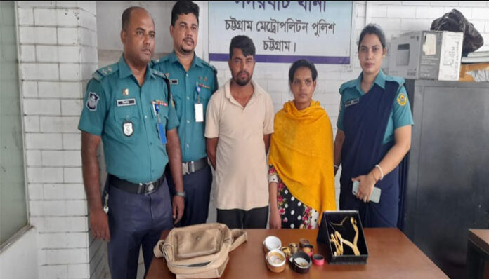 চট্টগ্রাম প্রতিনিধি: চট্টগ্রামের সদরঘাট থানাধীন আইস ফ্যাক্টরী রোডস্থ কে. এম ড্রিমলেন্ড টাওয়ার থেকে চুরি হওয়া ১২ ভরি ৯ আনা ১ রতি স্বর্ণ উদ্ধারসহ দু’জনকে গ্রেপ্তার করেছে পুলিশ।