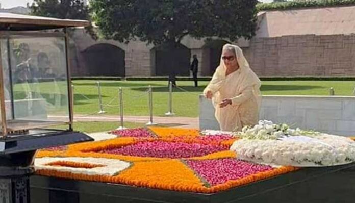 অনলাইন ডেস্ক : দিল্লির রাজঘাটে ভারতবর্ষের স্বাধীনতা এবং নাগরিক অধিকার আন্দোলনের অন্যতম নেতা মোহনদাস করমচাঁদ গান্ধীর (মহাত্মা গান্ধী) সমাধিতে শ্রদ্ধা জানিয়েছেন প্রধানমন্ত্রী শেখ হাসিনা।