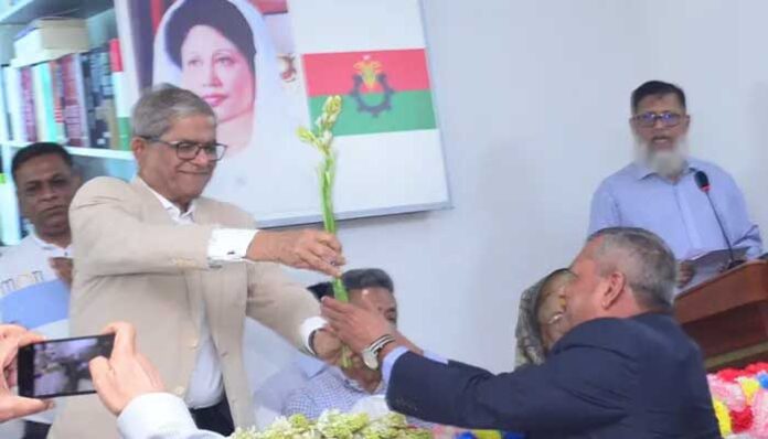 এসময় বিএনপি মহাসচিব মির্জা ফখরুল ইসলাম আলমগীর তাদের ফুল দিয়ে বরণ করে নেন।