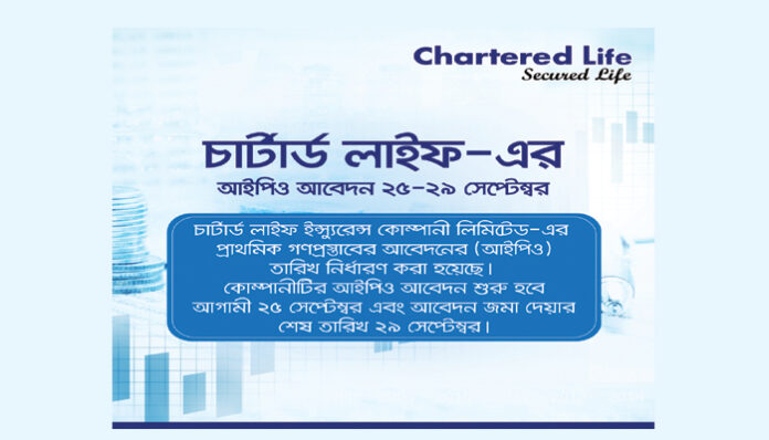 চার্টার্ড লাইফ ইন্স্যুরেন্স কোম্পানী লিমিটেডের আইপিও আবেদন ২৫-২৯ সেপ্টেম্বর