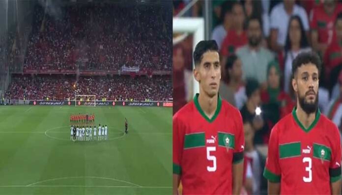 মঙ্গলবার (১২ সেপ্টেম্বর) মরক্কো বনাম বুরকিনা ফাসোর ম্যাচে জাতীয় সংগীতের পরিবর্তে সূরা ফাতিহা তেলাওয়াত করা হয়। খেলোয়াড়দের সঙ্গে মাঠে উপস্থিত দর্শকরাও তেলওয়াত করেন।