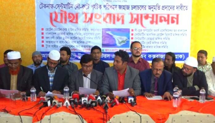 মোহাম্মদ রিদুয়ান হাফিজ, কক্সবাজার প্রতিনিধি: কক্সবাজারের টেকনাফ থেকে সেন্টমার্টিন নৌ-রুটে পর্যটকবাহী জাহাজ চলাচলের দাবীতে ট্যুর অপারেটর এসোসিয়েশন অব কক্সবাজার- ট্যুয়াকের আয়োজনে যৌথ সংবাদ সম্মেলন করেছে ১০ টি পর্যটন সংশ্লিষ্ট ব্যবসায়ী সংগঠন।