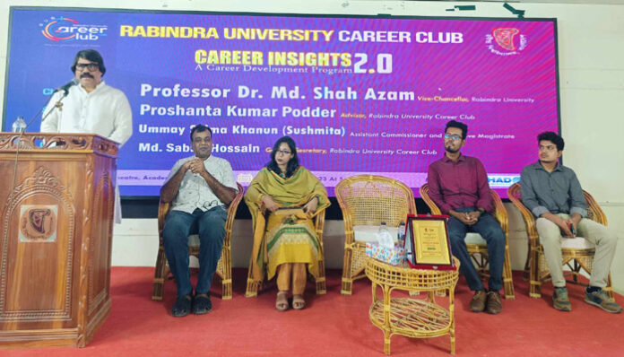 প্রধান অতিথির বক্তব্যে রবীন্দ্র বিশ্ববিদ্যালয়ের মাননীয় উপাচার্য বলেন, বিদ্যাপীঠ প্রকৃত নাগরিক গড়ে তোলার পুণ্যভূমি। বিদ্যাপীঠ ছাড়া কখনোই সুনাগরিক গড়ে উঠতে পারে না। আগামী দিনের চ্যালেঞ্জ ও ঝুঁকি মোকাবেলায় দক্ষ জনসম্পদ গড়ে তুলতে আমরা অবদান রাখতে চাই। উপাচার্য মহোদয় ক্যারিয়ার ক্লাবের এই উদ্যোগকে স্বাগত জানান। সেমিনারে তিনি শিক্ষার্থীদের ক্যারিয়ার গঠন বিষয়ে বিভিন্ন দিক বাস্তবিক উদাহরণসহ আলোচনা করেন।’