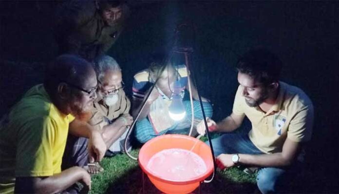 সেলিম রেজা, সিরাজগঞ্জ প্রতিনিধি: কীটনাশক ব্যবহার না করে ক্ষতিকারক পোকা মাকড়ের কবল থেকে রোপা আমন ফসল রক্ষায় শস্য ভান্ডার খ্যাত সিরাজগঞ্জের তাড়াশ উপজেলায় জনপ্রিয় হয়ে উঠছে আলোক ফাঁদ। বিশেষ করে এখন ফসলের ক্ষতি করে এমন কারেন্ট পোকা, মাজরা পোকা, গান্ধি পোকা ও চুঙ্গি পোকাসহ বাদামী ঘাস ফড়িং দমনে জমিতে আলোক ফাঁদ বা পার্চিং পদ্ধতি ব্যবহার বেড়েছে।