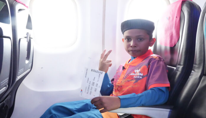 নিজস্ব প্রতিবেদক: ভিসা ও পাসপোর্ট ছাড়া নিরাপত্তা কর্মীদের চোখ ফাঁকি দিয়ে বিমানের আসন পর্যন্ত যেতে পারলেও আকাশ থেকে পাখির চোখে পৃথিবী দেখার সুযোগ হয়নি গোপালগঞ্জের মুকসুদপুর উপজেলার শিশু জুনায়েদ মোল্লার। এবার এই শিশুর স্বপ্ন পূরণে সঙ্গী হয়েছে দেশের শীর্ষ ইলেকট্রনিক্স পণ্যের বিক্রয় ও সেবাদানকারী প্রতিষ্ঠান ওয়ালটন প্লাজা।