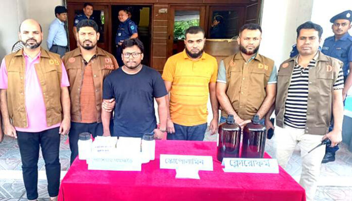 গ্রেফতারকৃতরা হলো, চাঁদপুর জেলার দক্ষিণ মতলব থানার নারায়ণপুর গ্রামের শাহ আলম প্রধানের ছেলে শাকিল আহমেদ এবং বরিশালের বাবুগঞ্জ থানার ইদিলিকাঠি গ্রামের নূর মোহাম্মদ মোল্লার ছেলে রাকিব।