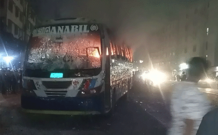 গাজীপুর প্রতিনিধি : গাজীপুর মহানগরের ছয়দানা এলাকায় শ্রমিক নিহতের গুজবে দুুটি বাসে আগুন দিয়েছে উত্তেজিত শ্রমিকরা। এসময় কয়েকটি বাসে তারা ভাংচুর চালায়।