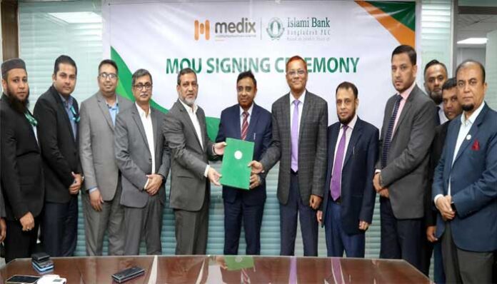 কর্পোরেট ডেস্ক : ইসলামী ব্যাংক বাংলাদেশ পিএলসি ও ইউনাইটেড হেলথকেয়ার সার্ভিসেস লিমিটেড-এর সহযোগী প্রতিষ্ঠান মেডিক্সের মধ্যে একটি কর্পোরেট চুক্তি স্বাক্ষরিত হয়েছে।