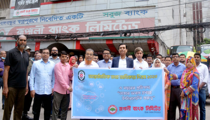 কর্পোরেট ডেস্ক: রূপালী ব্যাংক লিমিটেডের উদ্যোগে আন্তর্জাতিক তথ্য অধিকার দিবস ২০২৩ পালন করা হয়েছে। তথ্যের অবাধ প্রবাহে ইন্টারনেটের গুরুত্ব এই প্রতিপাদ্যকে সামনে রেখে এবারের তথ্য অধিকার দিবসের শ্লোগান রাখা হয় ‘ইন্টারনেটে তথ্য পেলে জনমনে শান্তি মেলে’।