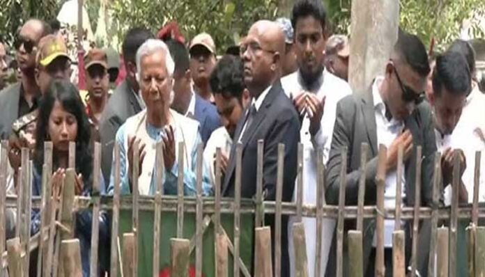 নিজস্ব প্রতিবেদক : কোটা সংস্কার আন্দোলনে পুলিশের গুলিতে নিহত বেগম রোকেয়া বিশ্ববিদ্যালয়ের (বেরোবি) ইংরেজি বিভাগের শিক্ষার্থী আবু সাঈদের কবর জিয়ারত করেছেন অন্তর্বর্তীকালীন সরকারের প্রধান উপদেষ্টা অধ্যাপক ড. মুহাম্মদ ইউনূস।