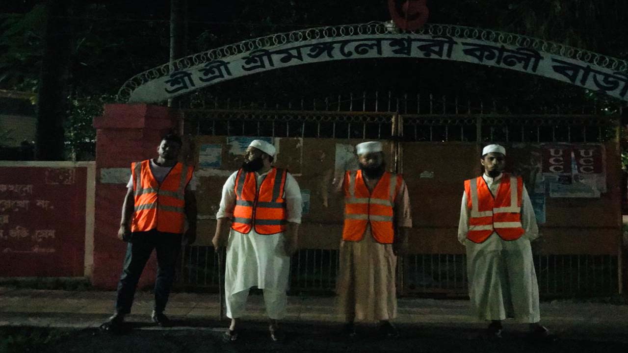 সার্বজনীন দুর্গাবাড়ীর যুগ্ম-সম্পাদক দেবাশীষ সেন গৌতম বলেন, আমাদের মন্দিরে এখন পর্যন্ত কোনো সমস্যা হয়নি। রাত জেগে মাদ্রাসার শিক্ষক-শিক্ষার্থীরা মন্দির পাহারা দেওয়ায় আমরা নিরাপদ বোধ করছি।